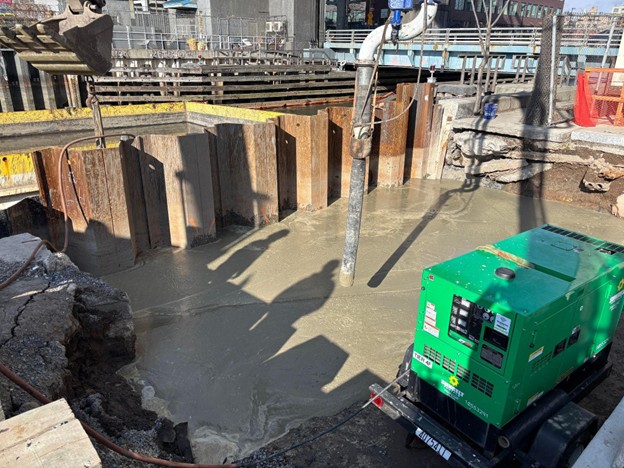 Bulkhead installation continued near 9th Street. Excavation was conducted. Controlled Low-Strength Material (CLSM) was placed.