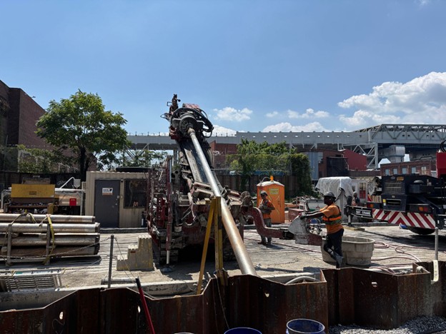 Bulkhead installation continued near Bush Street. Tiebacks were installed. Grout was placed.