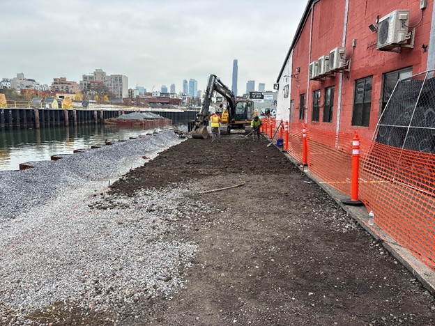 Bulkhead installation continued near 3rd Street. Drain outlets were installed.