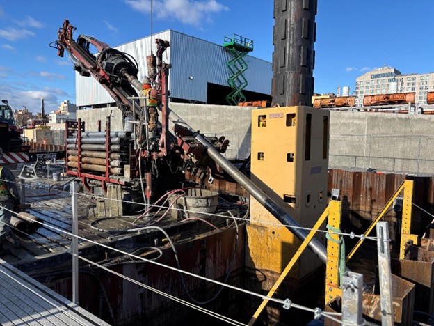 Bulkhead installation continued near Bush Street. Tiebacks were installed.